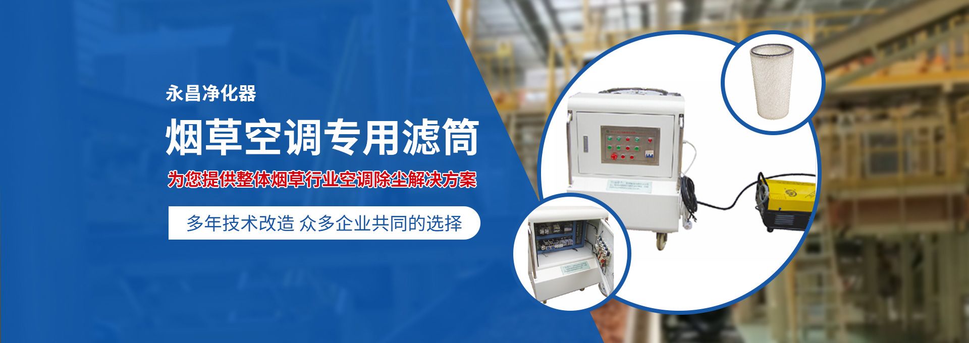 新鄉(xiāng)市永昌凈化器有限公司是生產(chǎn)煙草行業(yè)空調(diào)除塵專用濾筒的企業(yè)。注冊(cè)資金1000萬元。已通過ISO9001國際質(zhì)量管理體系認(rèn)證。對(duì)產(chǎn)品有嚴(yán)格的管理制度和售后服務(wù)。我公司以誠信、負(fù)責(zé)、守信譽(yù)、重質(zhì)量的精神所生產(chǎn)的產(chǎn)品,近幾年來在煙草行業(yè)受到廣泛應(yīng)用,并受到用戶的一致好評(píng)。  從一九九四年以來為煙廠的空調(diào)設(shè)備服務(wù)。十幾年來,我們不斷走出去請(qǐng)進(jìn)來學(xué)習(xí)新技術(shù)。定期到用戶那里咨詢情況:互相交流,認(rèn)真聽取寶貴意見,不斷提高產(chǎn)品質(zhì)量。從經(jīng)濟(jì)和安全,方便的角度出發(fā),根據(jù)煙廠濕度大的生產(chǎn)環(huán)境和濾筒收集到的含酸堿、氧化劑的粉塵。在空調(diào)箱工作狀態(tài)下我們頂著巨大的風(fēng)壓危險(xiǎn)在箱內(nèi)停留了幾分鐘,認(rèn)真查看濾筒工作情況,發(fā)現(xiàn)濾筒有并死狀態(tài),造成濾筒不過濾、不過風(fēng)、壓差高的現(xiàn)象。經(jīng)幾十次試驗(yàn)分析,在標(biāo)本兼治的原則下,有針對(duì)性的解決了這一問題。  我公司針對(duì)煙廠制絲、卷接包、混絲間、儲(chǔ)絲房、冷卻床、梗膨化等不同的生產(chǎn)環(huán)境,